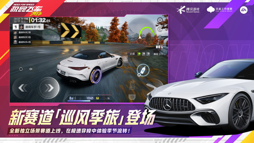 <p>《极品飞车:集结》全新「热湾领航员」版本登场!</p><p>全新玩法热湾领航员上线,与你共赴极速征程!</p><p>人气虚拟偶像「星瞳」闪亮登场,超多福利、联动内容等你揭晓!</p><p>殿堂传奇性能觉醒计划启动,顶级超跑上新!</p><p>S11新赛季「风驰秋境」火爆开启,车辆大乱斗、法拉利之战两大新主题进入限定排位,无限氮气赛迎来返场!</p><p><img src="https://wegame.gtimg.com/g.2002236-r.6704b/info/347eb4fea963915aefcdc9315f726518.jpg" width="1825" data-width="1920" data-height="1080" /></p><p>【开放世界 自由探索】</p><p>欢迎来到一亿平米热湾大世界,在这里,12种风貌各异的区域,20个地标以及500个玩法点等你来探索。高自由度地图搭配上丰富的单人以及多人玩法,目之所及,皆可前往,够自由,才够极品!</p><p><br /></p><p>【40人对抗 热力追踪】</p><p>热力追踪,经典重塑。在这里,你可以成为赛车手,在没有限制的比赛中极速狂飙赢取热度,成为“热力公敌”;也可以扮演追击队,驾驶直升机全城搜索,追逐车手扣押车辆,成为街头制裁者,够刺激,才够极品!</p><p><br /></p><p>【豪车云集 街头爆改】</p><p>来自全球30多个车企授权,法拉利、兰博基尼、迈凯伦等超150款车辆,均可免费获得!同时,赛车获得即“毕业”,不升阶、不升星,拒绝赛车数值深度养成。赛车手还可以通过外形改装打造自己的专属座驾,通过调校系统让爱车在性能和操控上达到最佳状态,引擎滚烫,即刻出发!够多车,才够极品!</p><p><br /></p><p>【UGC玩法 赛道由你定义】</p><p>超高自由度的UGC地图编辑器让赛车手们可以随心编辑各种关卡,一切皆有可能!多载具切换带来“上天入地”的刺激体验,同时还有30人同屏互动的多人模式等你来探索,呼朋唤友,乐趣加倍!够脑洞,才够极品!</p><p><br /></p><p>官方网站:nfsm.qq.com</p><p>官方微博:@极品飞车集结</p><p>微信公众号:极品飞车:集结</p><p>B站动态:极品飞车集结</p><p>官方抖音:极品飞车:集结</p> -> <p>《极品飞车:集结》狂飙征召版本登场!</p><p>新版本福利爽送不停歇,多重好礼陪你过双旦!新版本畅送3台传奇赛车、10000钻石、多套双旦限定外观及赛车外改。</p><p>狂飙征召玩法上新,赛车增益自由构筑,竞逐策略之巅!</p><p>全新独立场景赛道「巡风季旅」上线,极速穿梭中体验季节流转!</p><p>顶级超跑重磅上新,阿斯顿·马丁“女武神”诠释极速美学!</p><p>S12赛季「超限竞技」火爆开启,全新玩法「电磁肘击赛」加入限定排位!</p><p>【版更内容】</p><p>【极品飞车:集结】狂飙征召版本更新内容:</p><p>1、新版本福利爽送不停歇,多重好礼陪你过双旦!</p><p>新版本畅送3台传奇赛车、10000钻石、多套双旦限定外观及赛车外!更有任务卡系统上新,一键跳过繁琐任务,轻松游热湾!</p><p>2、狂飙征召玩法上新,赛车增益自由构筑,竞逐策略之巅!</p><p>全新赛车超限肉鸽玩法【狂飙征召】上线!随机获取初始赛车与车队传承,自由搭配六大特性效果,打造你的专属极速座驾。在紧张刺激的6人制末位淘汰赛中,撞击场景道具、收集极速核心,不断刷新车辆性能。用智慧组合策略,突破极限速度,挑战你的竞速巅峰!收集极速核心,不断刷新车辆性能。用智慧组合策略,突破极限速度,挑战你的竞速巅峰!</p><p>3、全新独立场景赛道「巡风季旅」上线,极速穿梭中体验季节流转!</p><p>系好安全带,启动引擎,开启一段逆向时空的极速穿越——从凛冬启程,驶向春秋。冲上断崖,雪崩与你并肩腾空;穿越山林,秋叶与春芽在窗外掠过。多个飞跃点将考验你的极限操控,最终在列车汽笛的轰鸣中,驶入群山环抱的宁静小镇,完成这场跨越三季的极速巡旅。</p><p>4、顶级超跑重磅上新,阿斯顿·马丁“女武神”诠释极速美学!</p><p>殿堂传奇赛车阿斯顿·马丁 Valkyrie AMR Pro 领衔,全新豪车重磅来袭!梅赛德斯-AMG SL 63 S、法拉利 Purosangue、阿斯顿·马丁 One-77 等豪车齐聚新版本!</p><p>5、S12赛季「超限竞技」火爆开启,全新玩法「电磁肘击赛」加入限定排位!</p><p>限定排位玩法大更新,【电磁肘击赛】新增“电磁撞击”、“磁吸引力”两大技能,在适当的时机释放技能撞击对手,“肘”个痛快!更有人气玩法【淘汰之王】限时回归、版本主题玩法【狂飙征召】加入限定排位,挑战不停,刺激加倍!</p><p><img src="https://wegame.gtimg.com/g.2002236-r.6704b/info/a11bfb24ab1918ad1306345f65aea8f9.jpg" width="1280" data-width="1280" data-height="720" /></p><p>【开放世界 自由探索】</p><p>欢迎来到一亿平米热湾大世界,在这里,12种风貌各异的区域,20个地标以及500个玩法点等你来探索。高自由度地图搭配上丰富的单人以及多人玩法,目之所及,皆可前往,够自由,才够极品!</p><p><br /></p><p>【40人对抗 热力追踪】</p><p>热力追踪,经典重塑。在这里,你可以成为赛车手,在没有限制的比赛中极速狂飙赢取热度,成为“热力公敌”;也可以扮演追击队,驾驶直升机全城搜索,追逐车手扣押车辆,成为街头制裁者,够刺激,才够极品!</p><p><br /></p><p>【豪车云集 街头爆改】</p><p>来自全球30多个车企授权,法拉利、兰博基尼、迈凯伦等超150款车辆,均可免费获得!同时,赛车获得即“毕业”,不升阶、不升星,拒绝赛车数值深度养成。赛车手还可以通过外形改装打造自己的专属座驾,通过调校系统让爱车在性能和操控上达到最佳状态,引擎滚烫,即刻出发!够多车,才够极品!</p><p><br /></p><p>【UGC玩法 赛道由你定义】</p><p>超高自由度的UGC地图编辑器让赛车